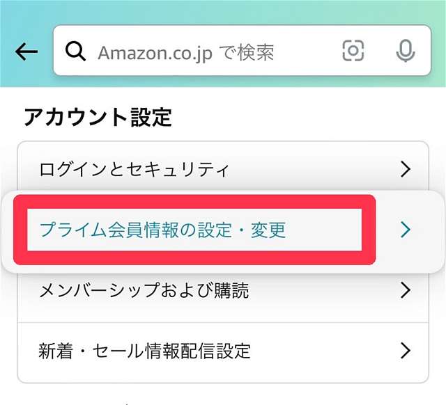 TOP>アカウントサービス>アカウント設定>プライム会員情報の設定・変更