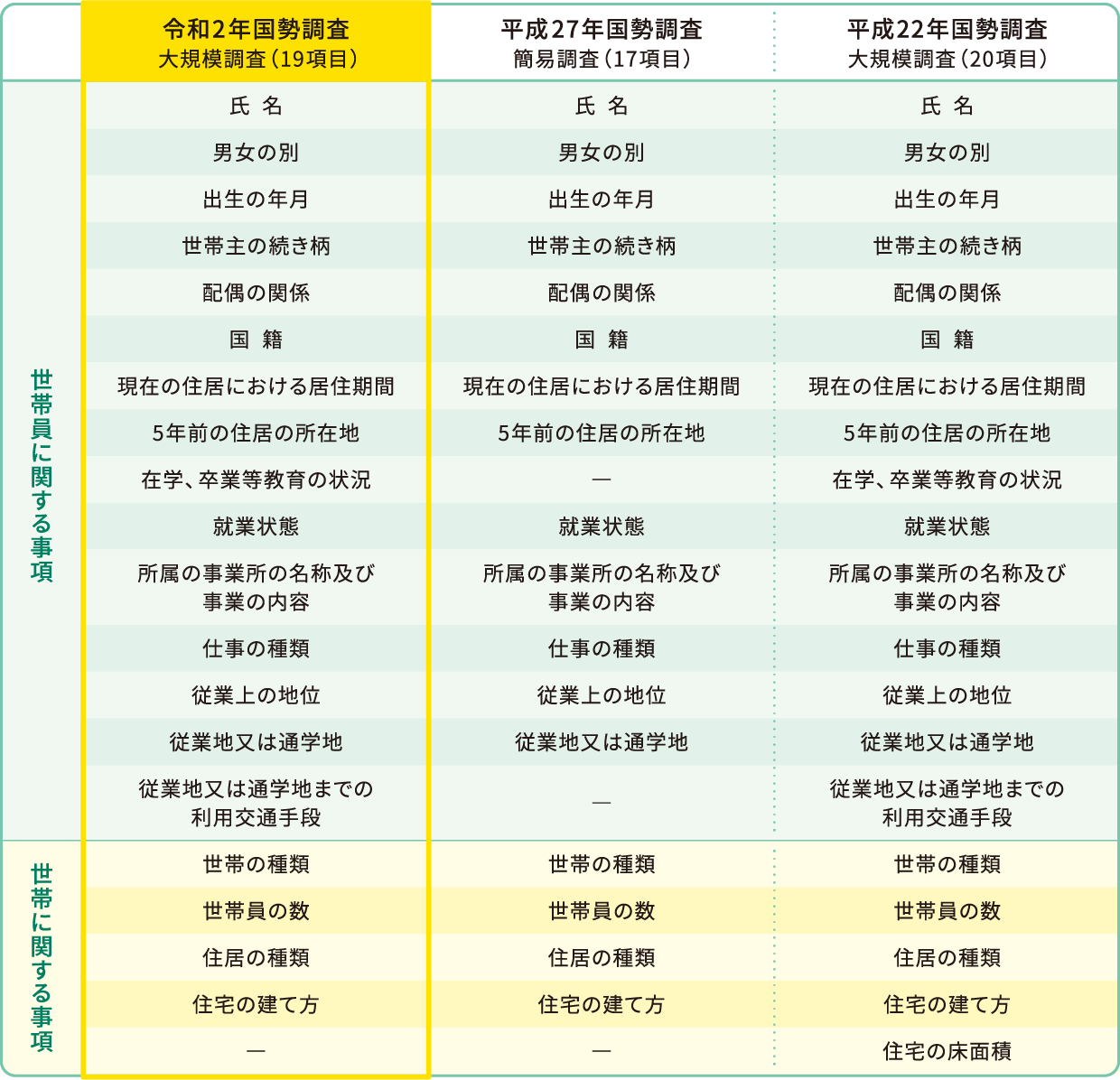 今年令和2年(2020年)は大規模調査の年に当たり、全部で19項目あるそうです。