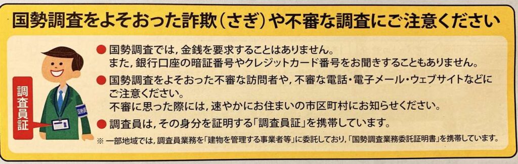 最近は物騒なことも多く、国勢調査を装った詐欺も横行しているそうです。