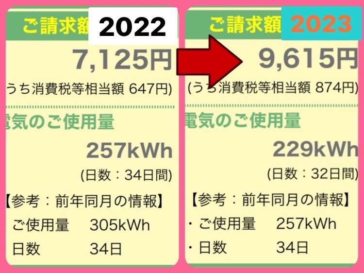 去年と今年を比較してみても、今年のほうが使っていないのに対して電気代は大幅UPでした。