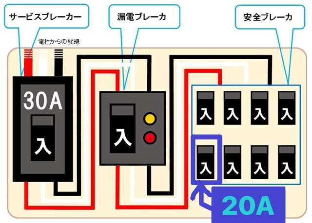 原因は、配線盤の分岐するアンペアがもともと20Aしかないためです。