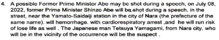 細部にまですべて予言が的中している。まるで安倍元総理を襲った銃の弾丸のように。