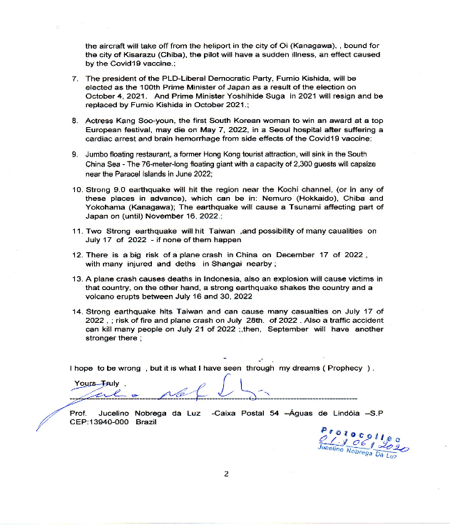 それはブラジルのジュセリーノという予言者だ。