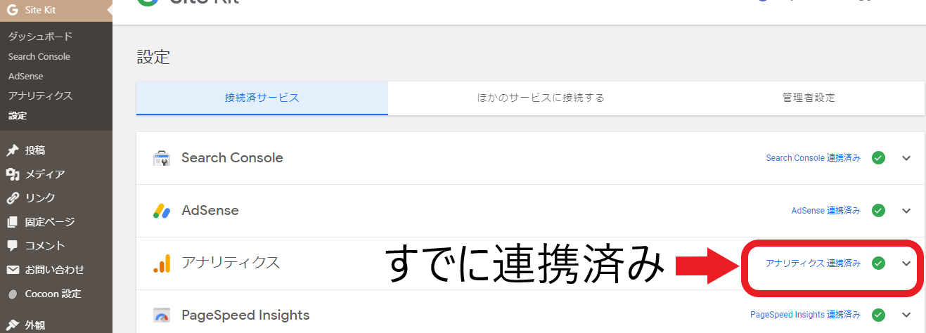 Search Console、Adsenseなどにもリンクしていてとても便利。