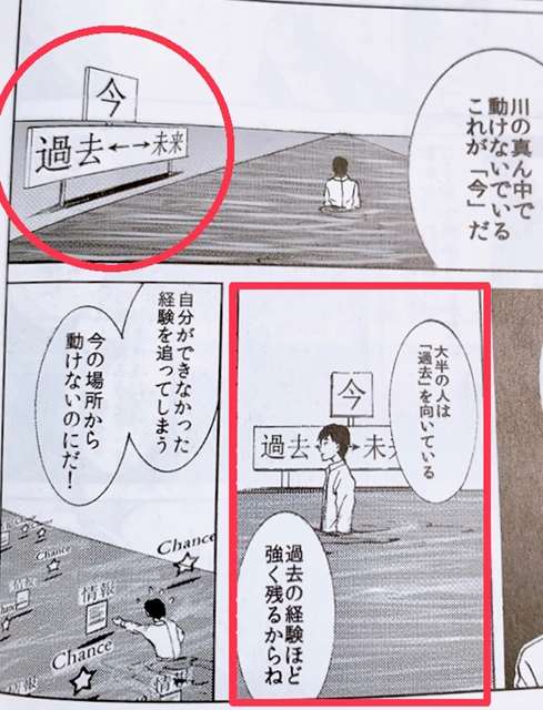 新しく未来から流れてくるリンゴを探しましょう。チャンスは未来からしかやってきません。過去は振り返らずに今できることを一生懸命やりましょう。