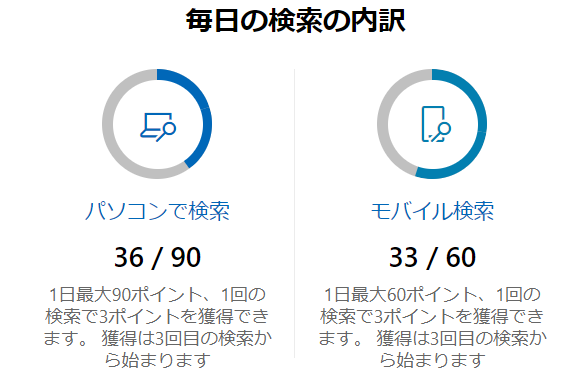 最近、Bingで検索してもポイントが増えないことが多くなり、規制がまたかかっているのかなと思っていました。