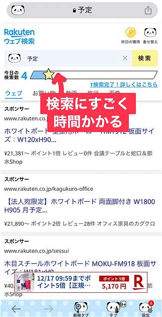 楽天はたしかにいろいろなアプリが多いですよね、検索も夜の11時過ぎるとサーバーが込み合うのか、全然検索が進まなくてイライラすることがあります。