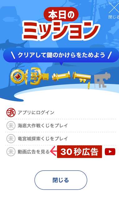 5回ミッションが集まると1ポイントに交換できるカギがもらえます。