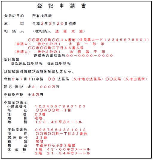 上記見本は子供二人が不動産を相続したかたちとなります。