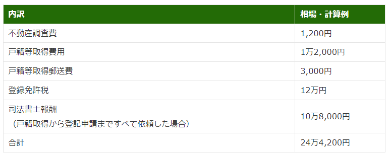 司法書士の方に頼むと免許税を抜いたとしても12万円くらいかかる可能性があります。