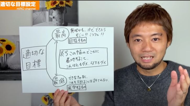 動画の中でヒロさんは、最高目標と最低目標の両方を立てるとよいとおっしゃっています。