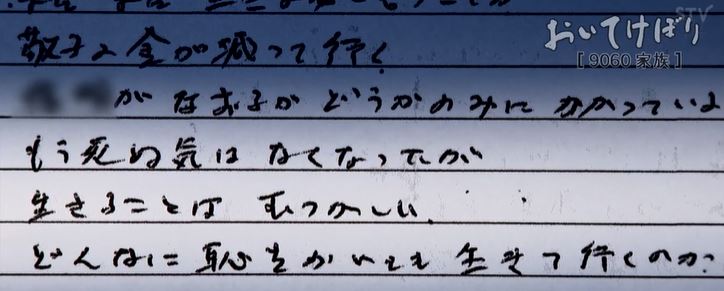 敬子さんは手紙を見た後もずっと「保険証ない、保険証ない」と言い続けていて、間違っていたら申し訳ないですがどことなく軽度の知的障害のような印象を受けました。(私の母に振る舞いが似ている部分があります)