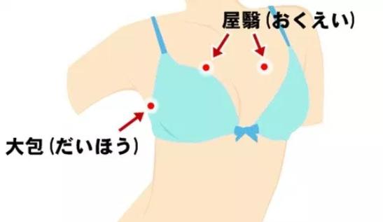 屋翳は、 鎖骨と乳首を結ぶ線上の真ん中のあたり。
