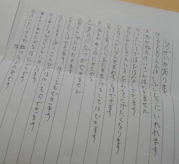 自身のできること、できないことなど障害の内容を詳細に手書きで書かせたというのです。