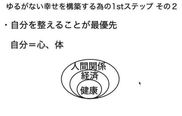 自分の心と体を整えることが核となり、人間関係や仕事よりも大切ということをおっしゃっています。